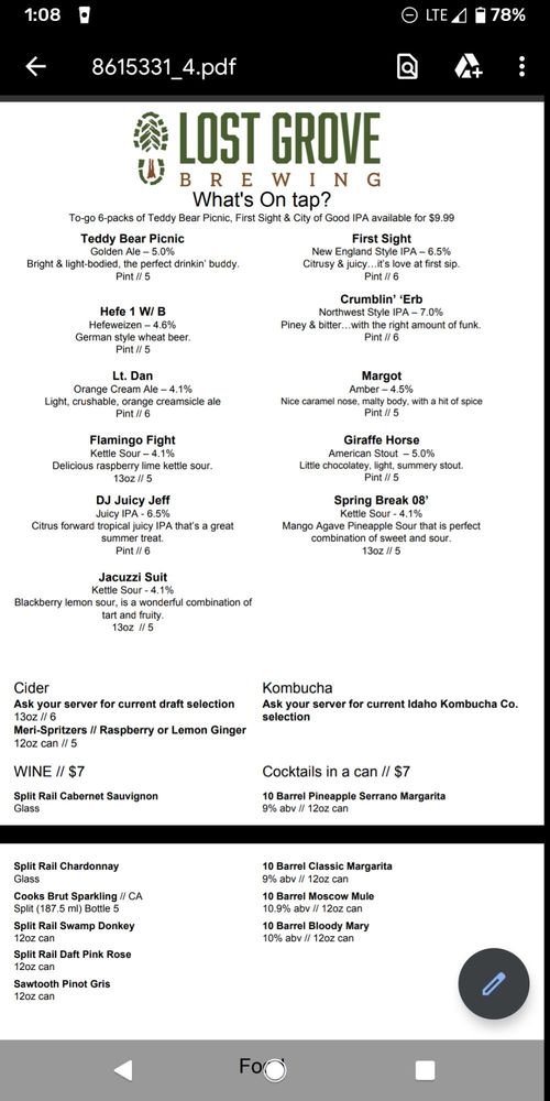 The atmosphere is inviting and family-friendly, with cozy indoor seating, a spacious outdoor beer garden, and even a small stage for live music—ideal for gatherings with friends or family. Enjoy a wide selection of beers, complemented by nonalcoholic choices including fresh Kombucha. With commendable service and a relaxed vibe, Lost Grove Brewing is truly a hidden gem worth discovering in Boise.